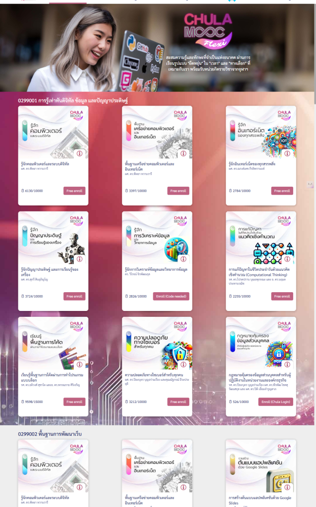 ข้างล่างนี้คือรวมลิสคอร์สฟรีแบบบุคคลทั่วไปก็ลงได้ครับ เพราะถ้าปรกติกดฟรีทั้งหมดเลยมันจะติดคอร์สของภายในที่ต้องใช้รหัสนักศึกษามาด้วย